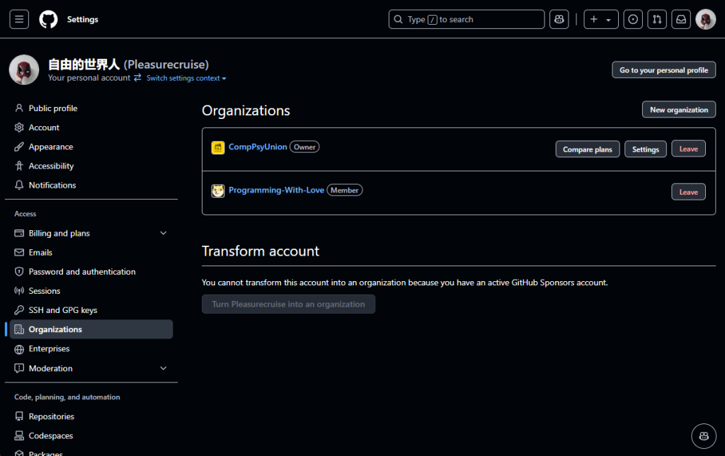 只需要将新注册一个Github账号然后前往https://github.com/settings/organizationsTransform account