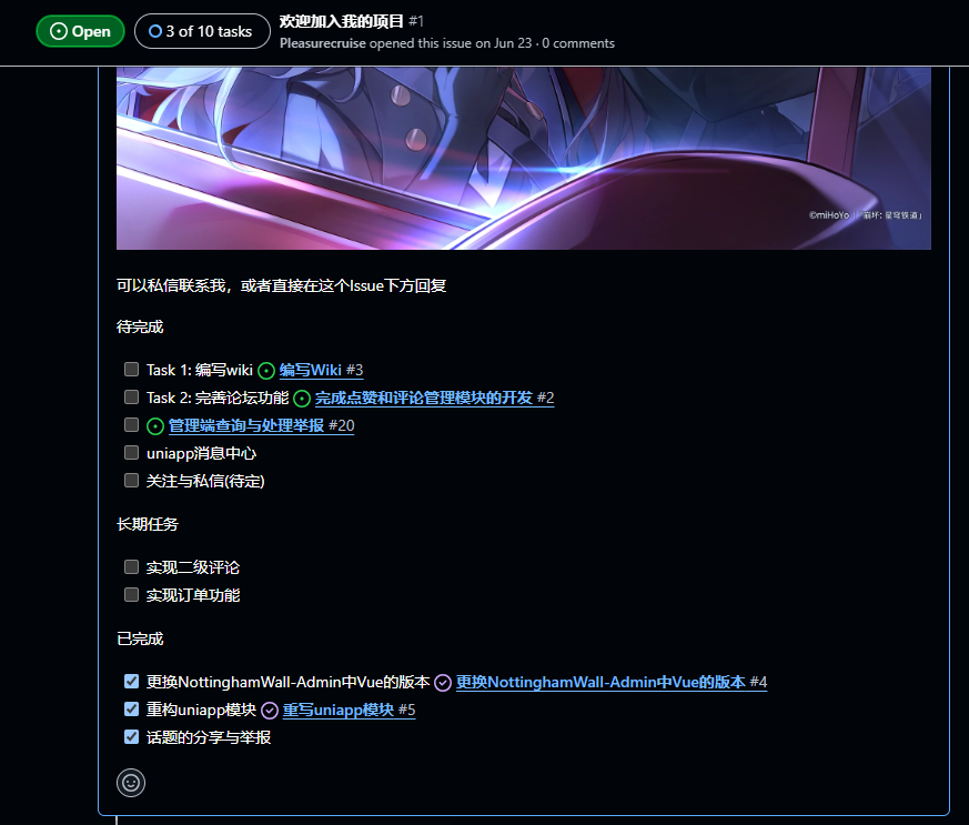 会在这个issue中罗列已完成和待完成的任务,并关联issue和pull request